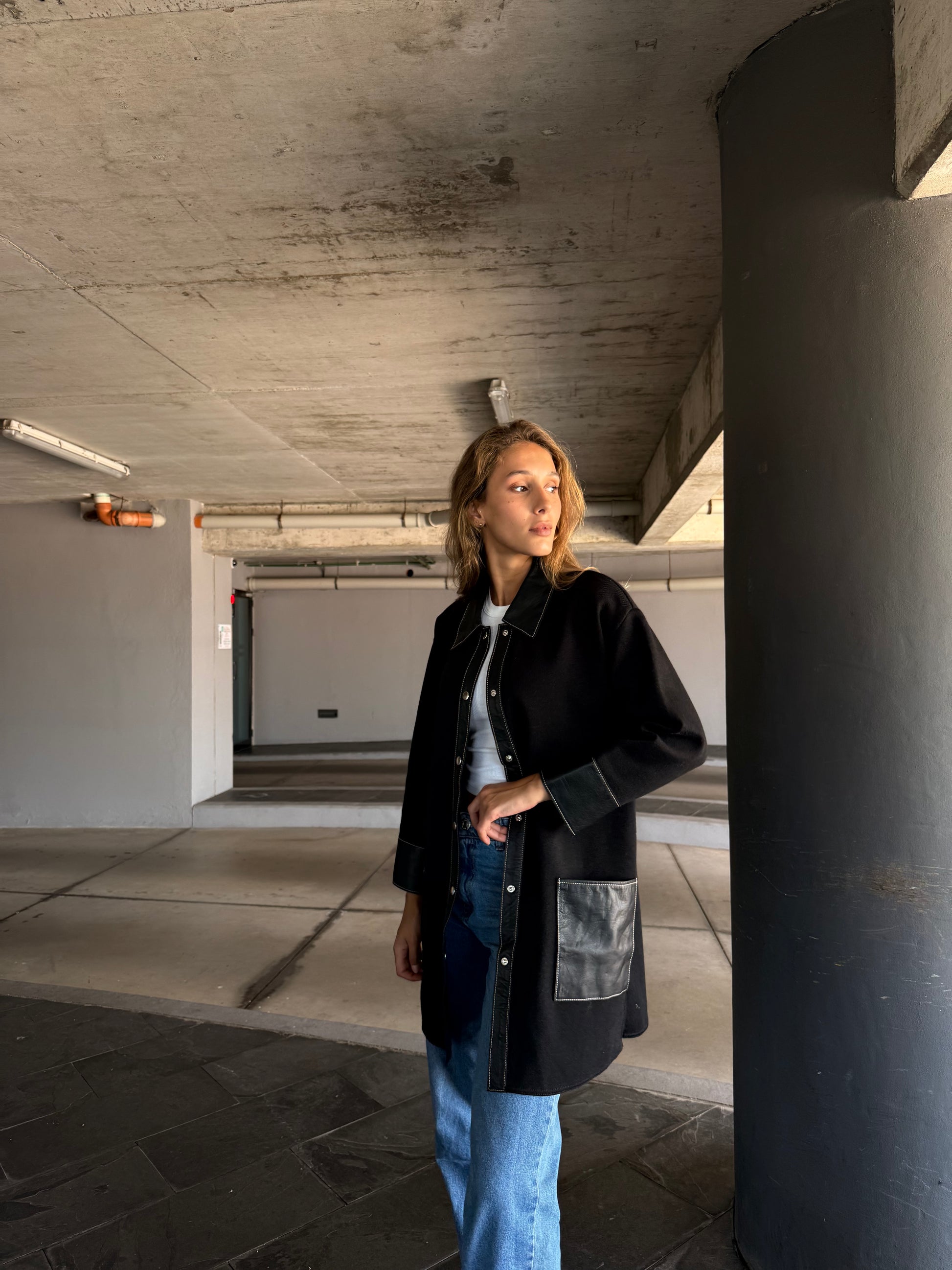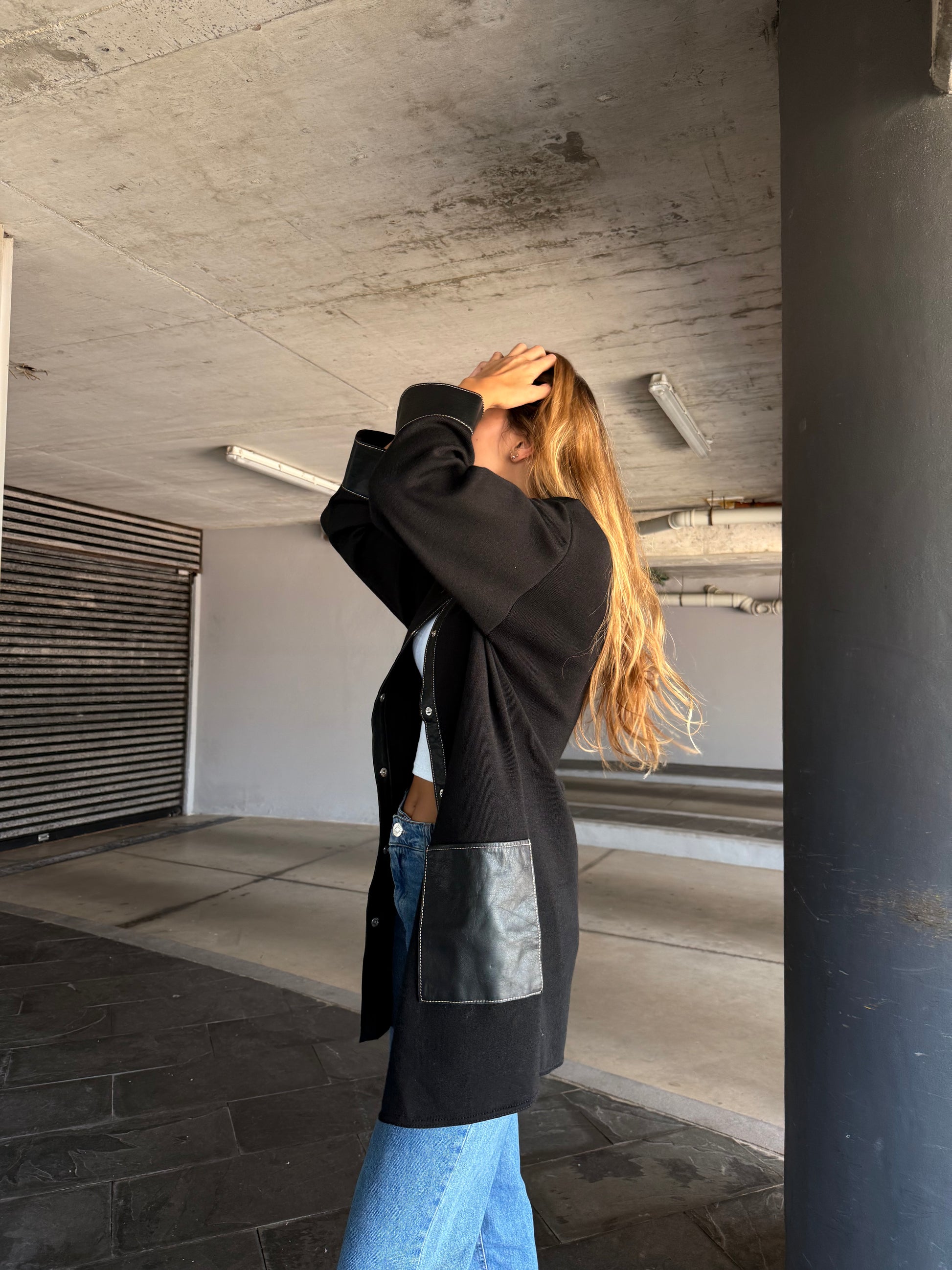 Tejida en lana Merino con cuero , talle 2