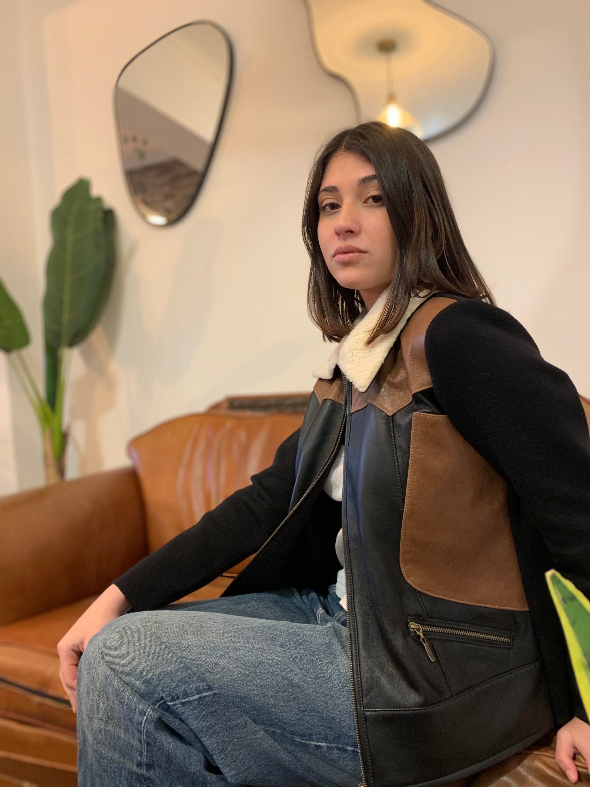 Tejido en algodón con detalles en cuero talle L .Medidas :
