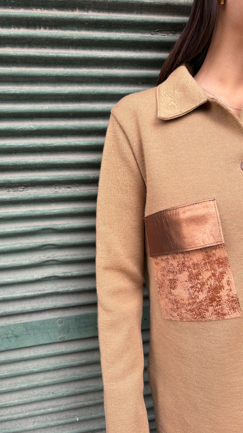 Tejida en lana con bolsillo cuero