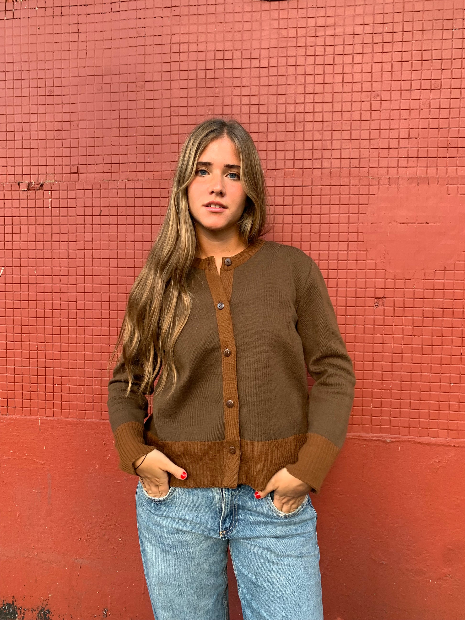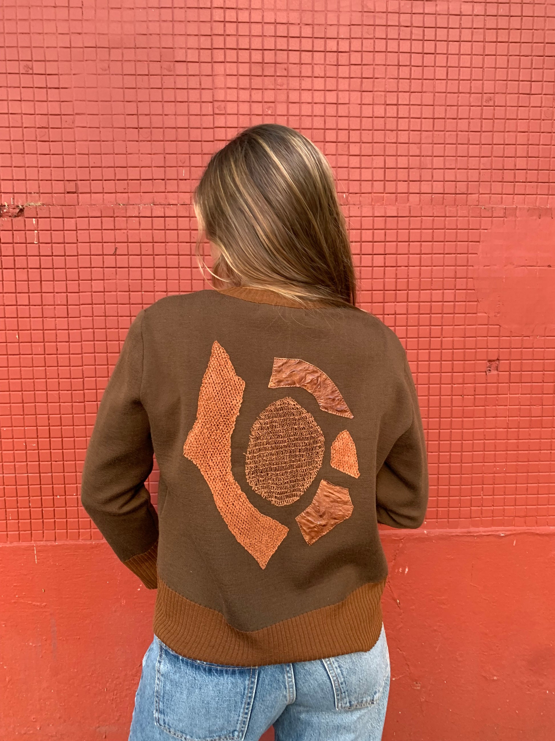 Tejida en lana Merino con detalle cuero .MEDIDAS : busto 104 cm , cadera 108 cm
