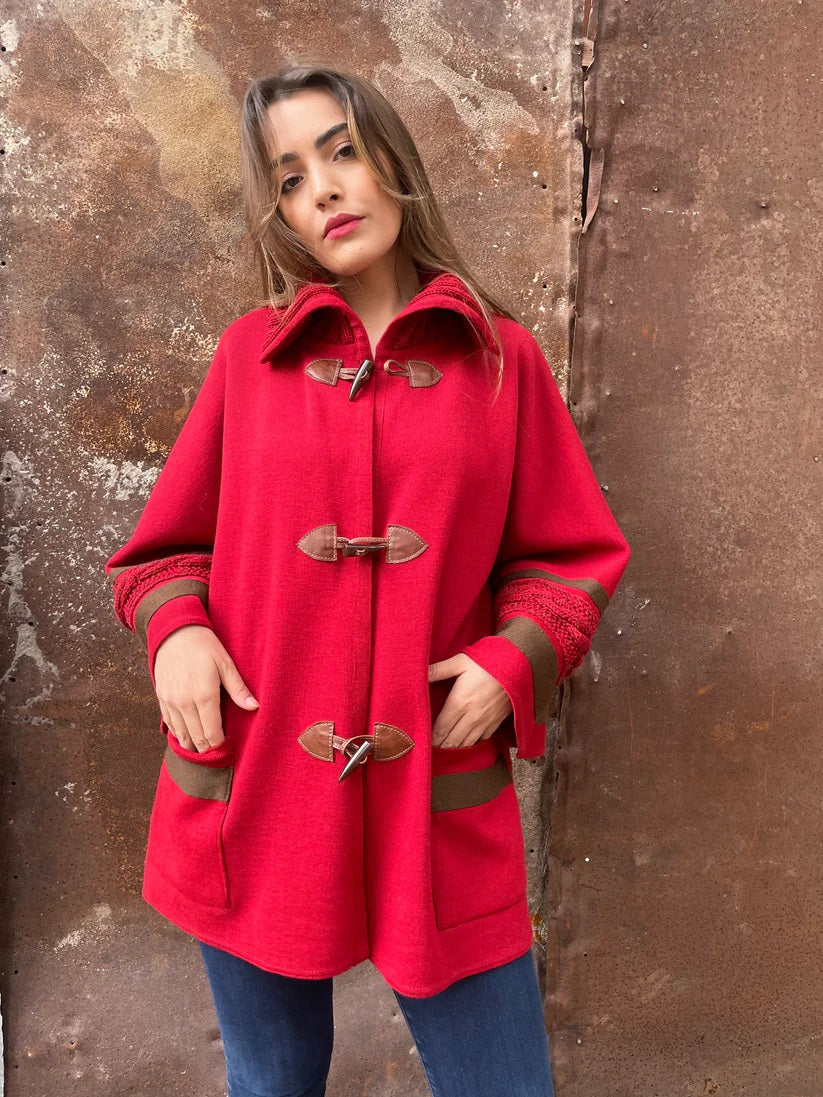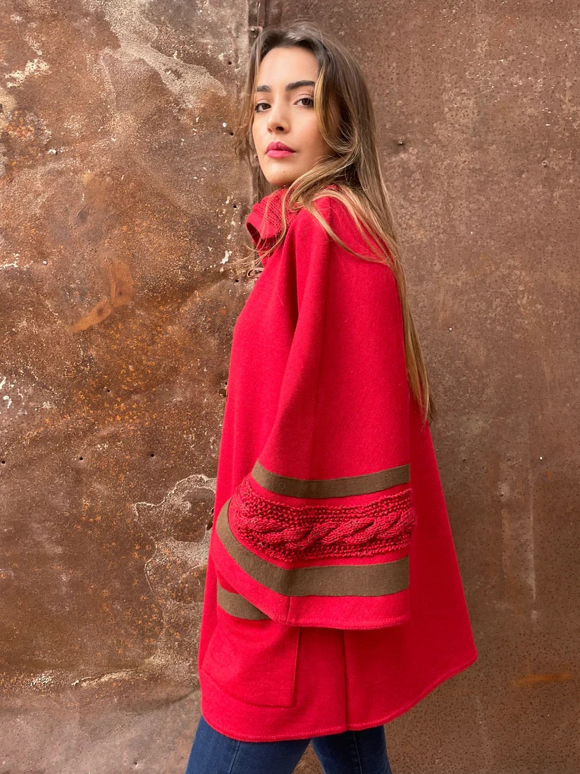 Tejido de punto fino en lana con detalles de cintas tejidas y trenza. talle único.