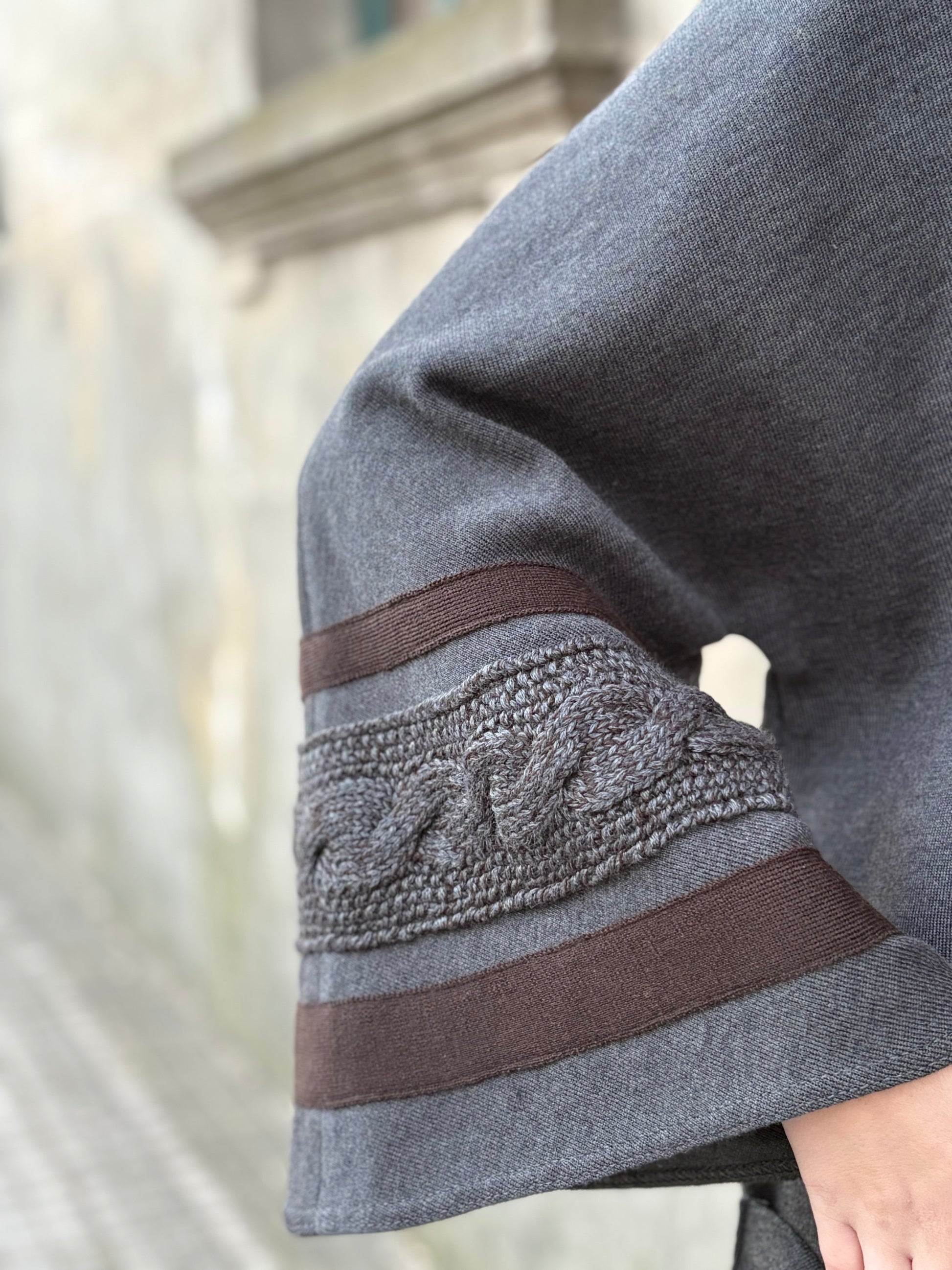 Tejido de punto fino en lana con detalles de cintas tejidas y trenza. talle único.( detalles cintas como última foto