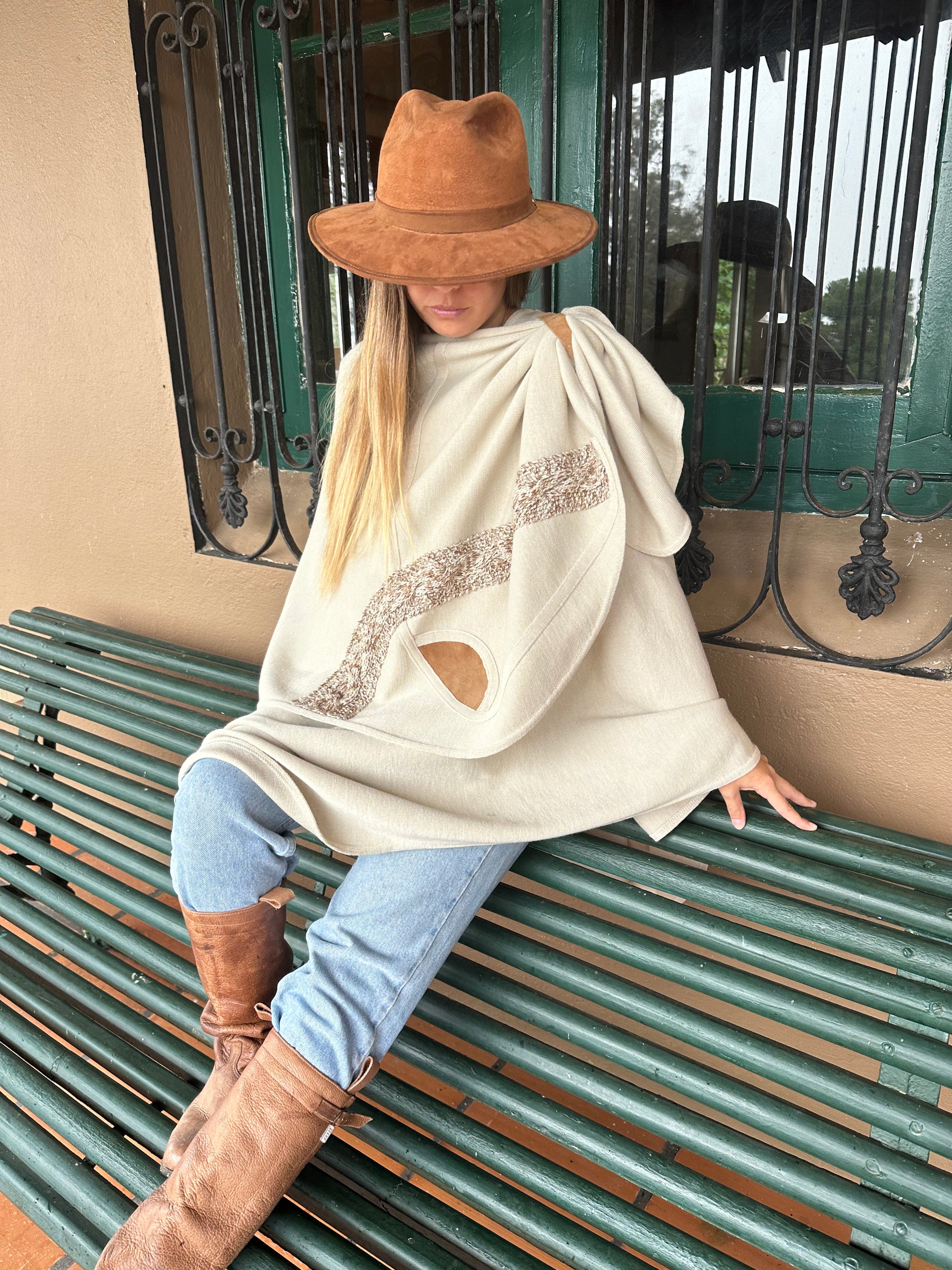 Tejido fino en lana Merino con detalles en cuero .